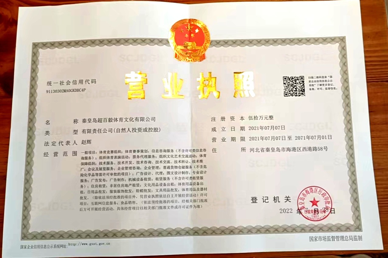 超百毅体育文化有限公司营业执照